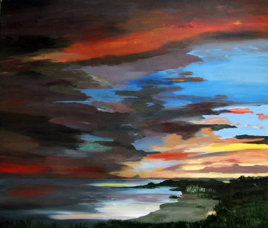 Erika Hausdörffer hat die von ihr bereisten und geliebten Landschaften - die Nordsee, die Provence / Camargue und auch das Allgäu, in zahlreichen, meist großformatigen Bildern (Acryl auf Leinwand) festgehalten.